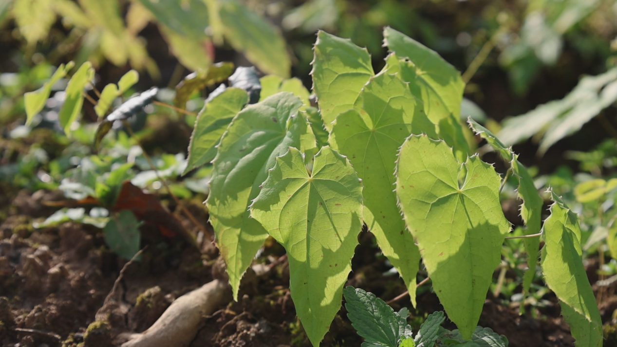 虎形村淫羊藿种植基地负责人朱春燕说道:“淫羊藿适合在弱酸或弱碱的环境下生长,pH值在7左右,为了达到淫羊藿良好的生长环境,我们通过添加发酵好的羊粪有机肥和火灰,改良土壤的疏松度和酸碱度,让植株有一个最好的生长环境。”