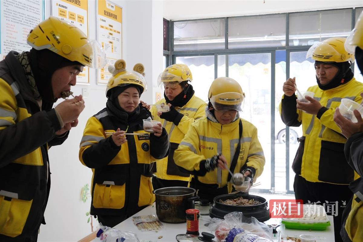 骑手们聚在一起喝藕汤、吃饺子
