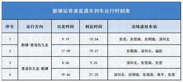 据悉,明年1月5日广汕高铁新塘站将开行的2对香港往返车次,为上下午各一对,途经东莞、深圳北、福田等重要枢纽节点。香港直通高铁的开行,将两地通行时间从150分钟缩短至90分钟,时效性大大提高,为两地居民提供更加舒适的出行服务,有力促进两地优势互补,产业进一步融合。