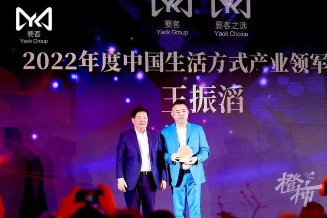 王振滔(右)获“2022年度中国生活方式产业领军人物”称号