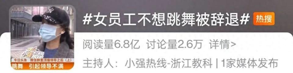 此前,杭州一位女员工因“不想跳舞”被辞退,该话题登上热搜,引发热议!