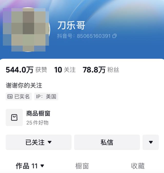 “刀乐哥”抖音主页作品、粉丝数据。抖音截图