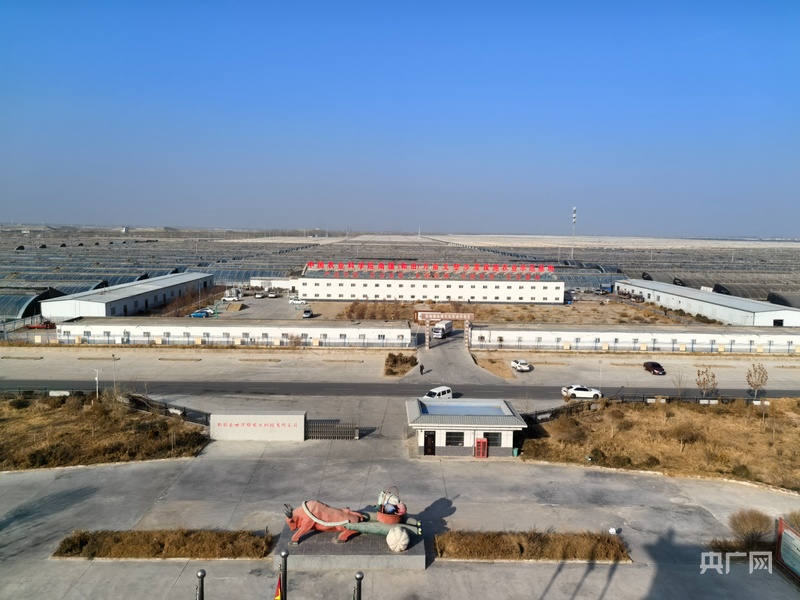 乘车进入和田县万亩设施农业基地,眼前的一片荒漠中,一座座整齐排列的温室大棚和智能日光温室格外显眼。
