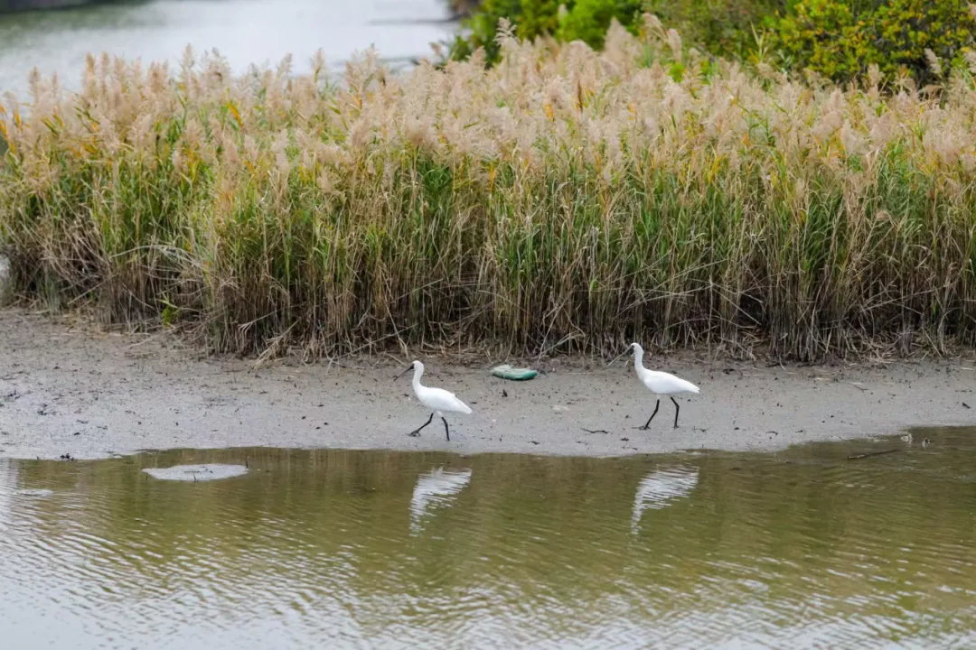 “有没有黑脸琵鹭在这里啊?没想到可以在这里看到这么多漂亮的鸟。”有媒体代表问。