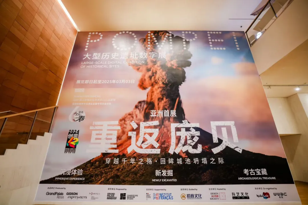 作为深圳年度综合性城市文化盛事“创意十二月”的重磅活动之一,今年,《重返庞贝》亚洲首展由法国国家博物馆联盟-巴黎大皇宫(GP-RMN)与庞贝古遗址公园主办,《重返庞贝》以前所未有的方式,首次在亚洲亮相大型沉浸式历史遗址数字展览,1:1复刻法国巴黎大皇宫展览盛况,携手中国独家版权方及运营方有艺文化呈现,带领观众亲历2000年前维苏威火山爆发的惊心动魄,身临庞贝古城命运的最终篇章。