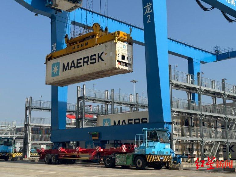 在南沙港港口,广州市南沙区商务局局长谢晓晖向记者介绍,二十年前,南沙港周边还是一片滩涂,随着近年的发展,南沙已成为国内大循环和国内国际双循环的重要交汇点。截至12月20日,南沙港区集装箱吞吐量正式突破2000万标箱,成为继上海港洋山港区后第二个年吞吐量超过2000万标箱的单一港区。2024年,南沙港区净增9条外贸集装箱航线,累计开辟165条外贸集装箱航线。水上运输货物周转量同比增长超7%,约占同期全省总量8成。