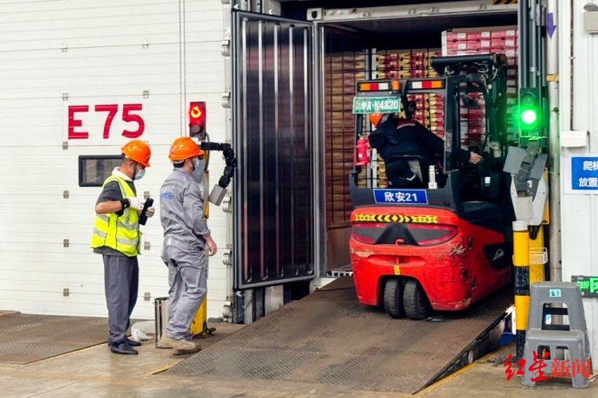 为什么会选择南沙港来进口车厘子?12月27日,广州南沙国际冷链有限公司业务总监崔彦伟向红星新闻介绍,经过几年的磨合,南沙港的口岸配套、海关、边检等体系,具体到卸船、清关,都采用了最高效便捷的措施,包括“多柜一单”“两部申报”“船边直提”等,推动货到即检、快速验放,进口生鲜商品最快可实现卸船2小时后到达集散市场。