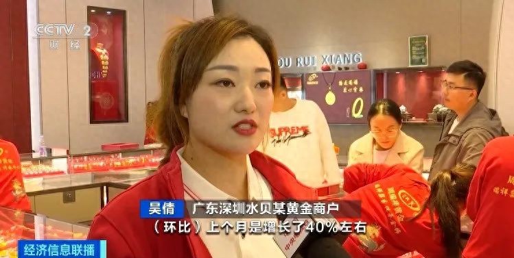 广东深圳水贝某黄金商户吴倩:现在的人流量,环比上个月增长40%左右,尤其是周末,会出现销售员接待不过来的现象。