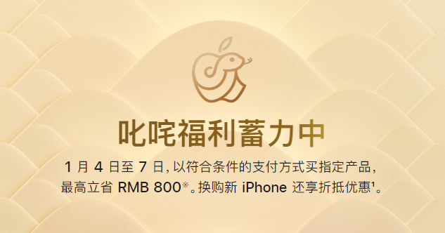 2025刚开始,苹果中国官网公布出了“叱咤福利”新年促销活动,将于1月4日至7日开启。