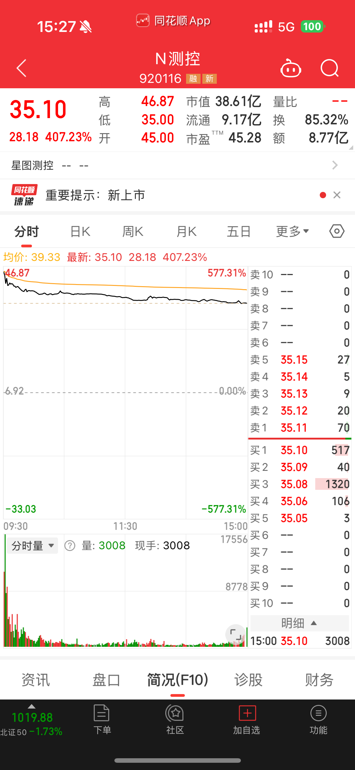 不过,今日新上市的N测控却延续了近期新股上市首日大涨的火热情绪。