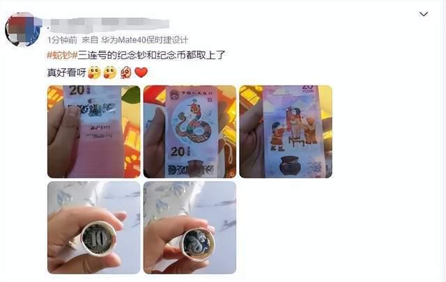 12月23日22:00与22:30,蛇年贺岁币、蛇年纪念钞分别“开约”。“原以为‘蛇币’‘蛇钞’不像‘龙币’‘龙钞’那么抢手,结果蹲守到10点多都没抢到!”不少地区开约即售罄,预约火爆程度超乎人们想象。