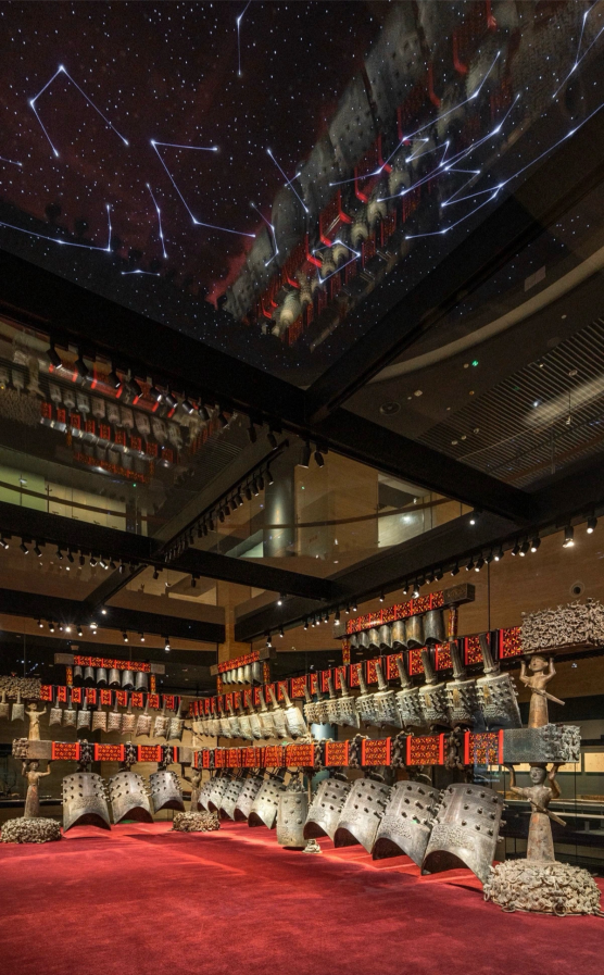 △曾侯乙编钟,出土于湖北随州曾侯乙墓。是目前已知全世界最大、最重、音乐性能最好的铜礼乐器。