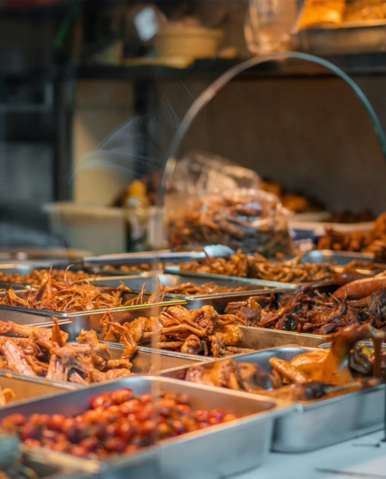 鸭脖鸭掌、豆干腐竹、牛肉牛杂……秘制香料浸透每一寸食材,每一口都是地道的荆楚风味。