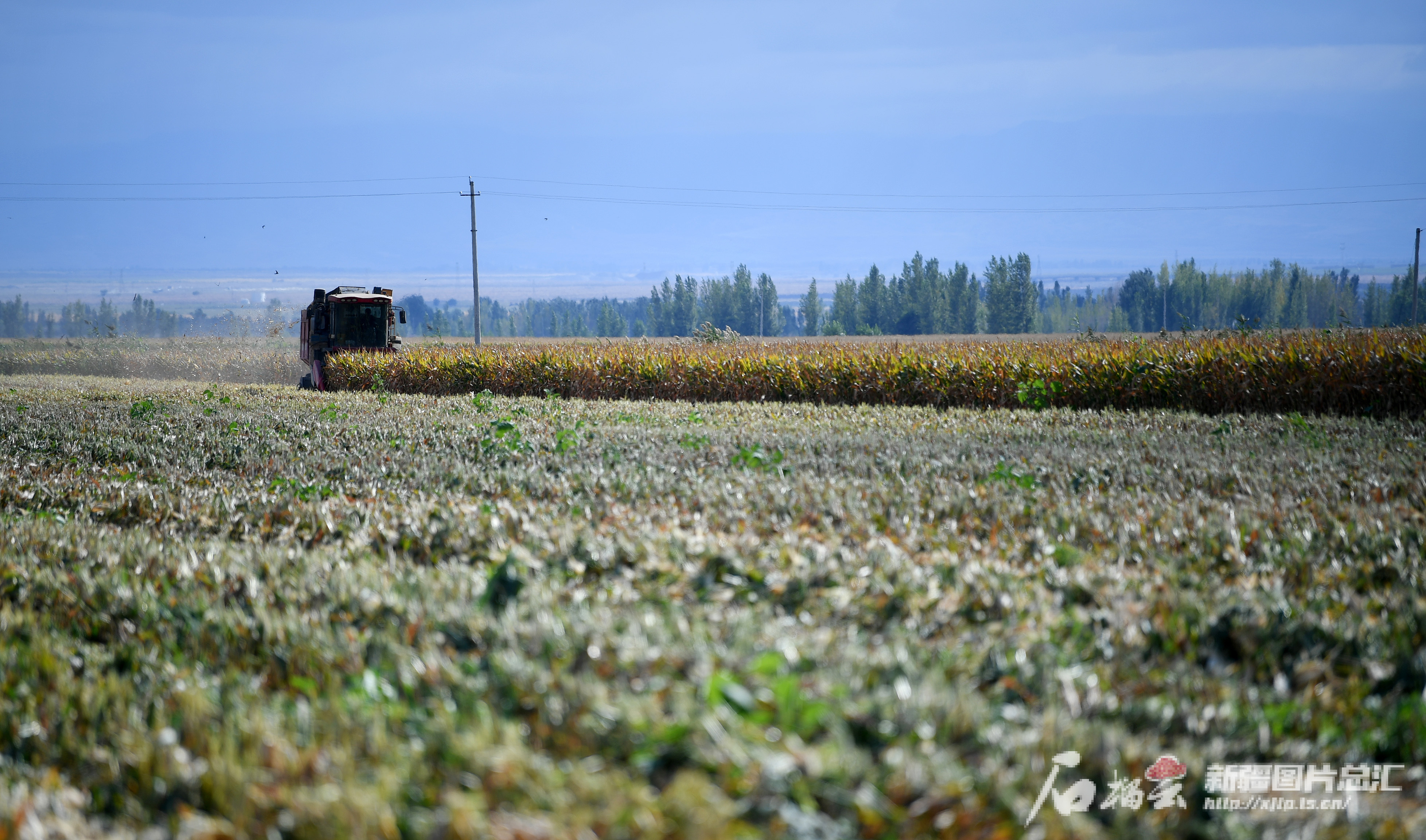 2024年9月26日,工作人员驾驶玉米收割机在察布查尔锡伯自治县爱新色里镇安巴帖村的玉米地里收割玉米。天山网-新疆日报记者邹懿摄(资料图)
