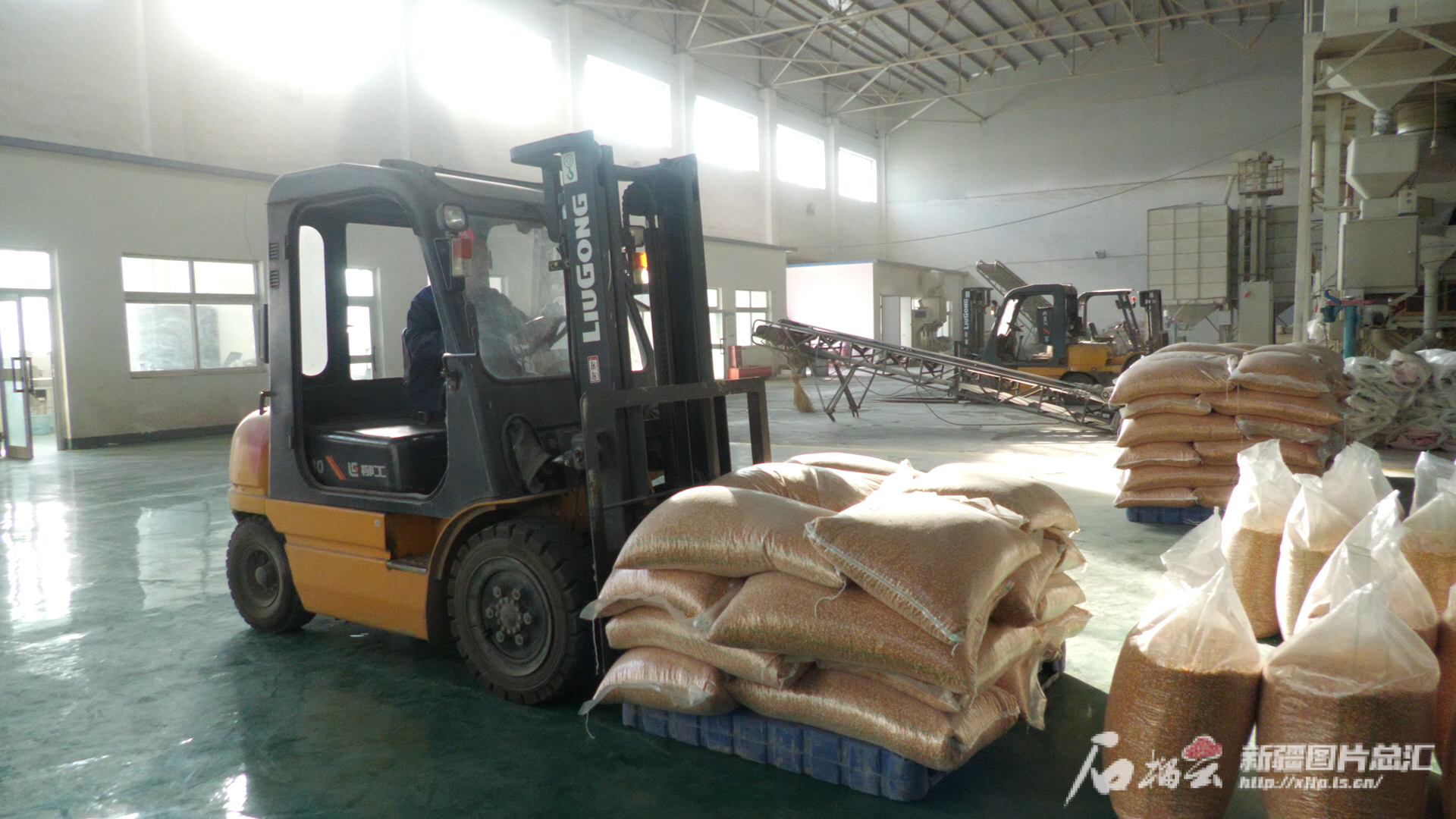 1月2日,山东登海种业股份有限公司伊犁分公司工人驾驶叉车把制种玉米搬运至包装生产线。吕佳齐摄