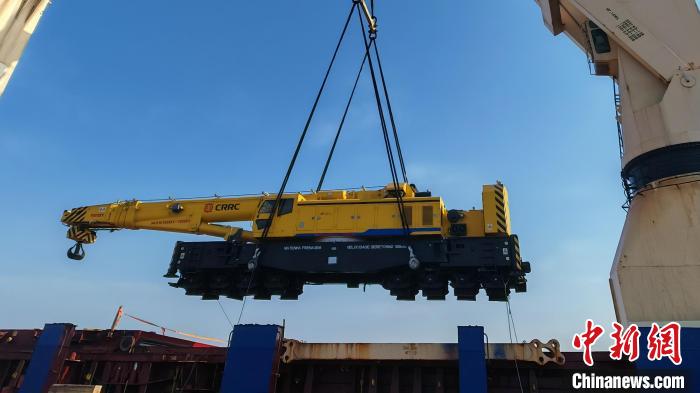 中新网齐齐哈尔1月4日电(刘廷禄记者史轶夫)1月4日,由中车齐车集团齐车公司研制的NZS1601型160吨窄轨伸缩臂铁路起重机在上海龙吴港装船,即将启程发往非洲安哥拉罗安达港,这是公司首次向安哥拉出口铁路起重机,也是目前中国出口海外的最大起重吨位铁路起重机。