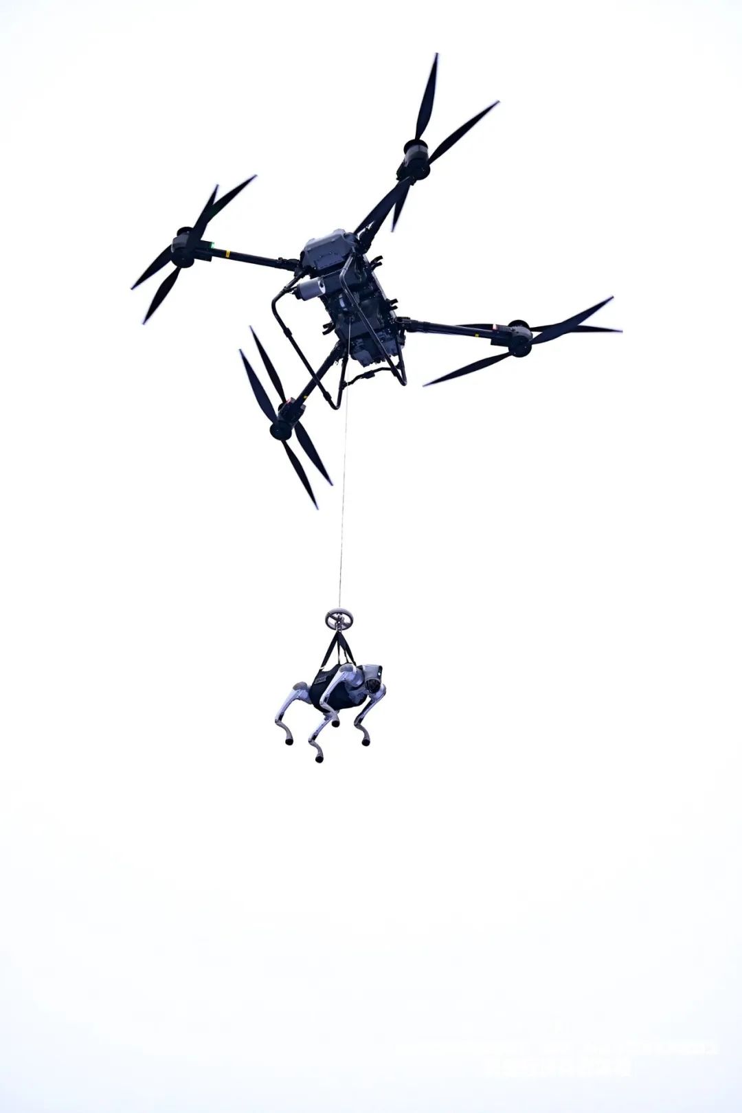 “首先,我们看到的是由贵州斯凯威科技有限公司及贵州恒飞科技有限公司联合展现的搜索、指挥、救援和物资运输场景。”上午10点,在主持人的调度指挥下,企业飞手操控一辆搭载热成像设备的无人机快速对失踪人员进行搜寻,并迅速确定失踪人员所在区域,将医护人员及时派往现场,同时通过空中指挥,调度运载无人机将机器狗吊运至失踪人员附近协助搜救。由于失踪人员伤势较重,急需医疗物资紧急处理,空中指挥调度大载重无人机,搭载特制运输箱进行医疗物资运送,随着急救物资准确到达救援现场,救援人员成功获救,任务圆满完成。