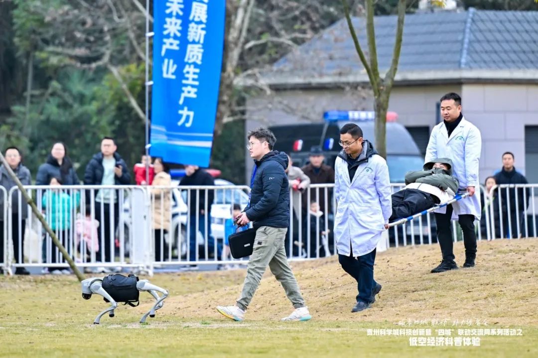 1月4日,贵州科学城科技创新暨四城联动交流周系列活动之低空经济科普体验活动火热启动,在观山湖公园民族大联欢广场上空,救援无人机、运载无人机、无人驾驶飞碟、表演型穿越机等航空器轮番上阵、各显神通,为现场观众带来“失踪人员搜寻、水下搜救、安全巡检、急速穿行、巡回飞行”等专业表演,在一阵阵惊喜声、鼓掌声中,活动的炽热氛围逐渐驱散人们的阵阵寒意,让大家近距离感受到了来自低空经济和科技进步的无限魅力。
