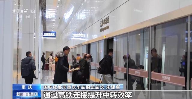 国铁成都局重庆车站值班站长 朱建军:依托新开成自宜和渝昆高铁线路,开行环线高铁,首次连接成都天府国际机场和重庆江北国际机场,通过高铁连接提升中转效率。