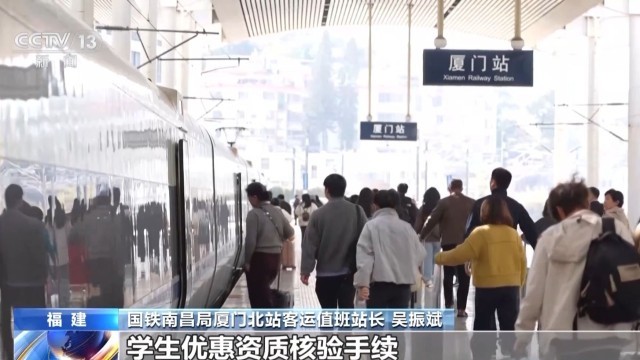 国铁南昌局厦门北站客运值班站长吴振斌:现在中国高等教育学生信息网和铁路12306系统已实现信息对接,学生旅客每学年乘车前可通过铁路12306App在线办理学生优惠资质核验手续。