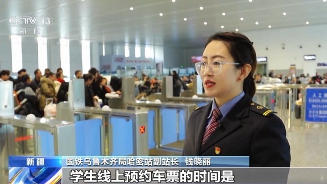 国铁乌鲁木齐局哈密站副站长钱晓丽:学生线上预约车票的时间是自2024年12月12日至2025年2月12日期间。符合条件的旅客,可在开车前17天提交预约购票需求,最晚可预约2025年2月28日的车票。同一账户最多可同时提交3个订单,每个订单可添加1个乘车日期的5个“车次+席别”的组合,学生优惠票可选择硬座、硬卧、二等座,最多可为包含本人在内的9名学生旅客预约。