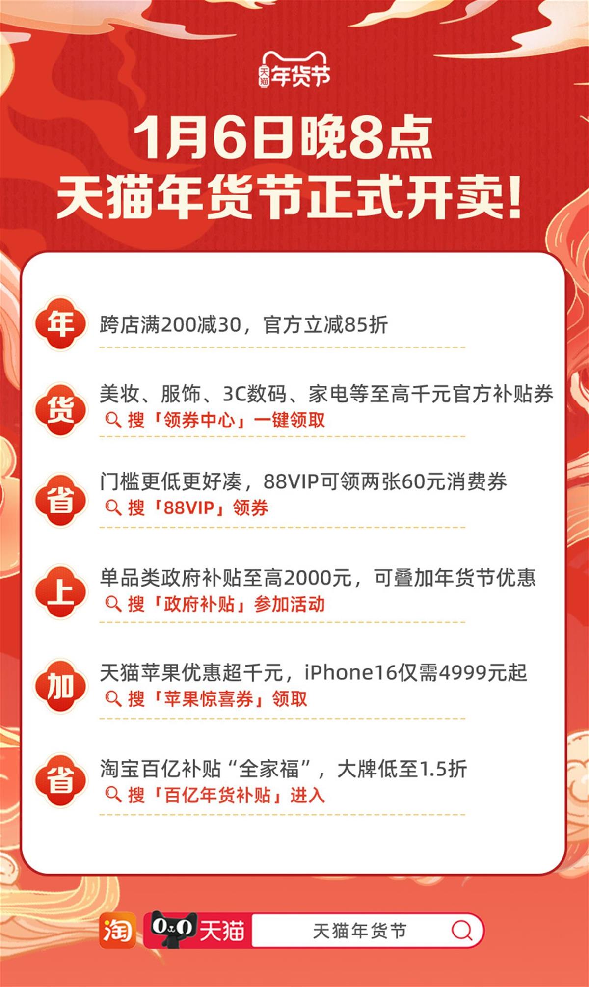 蛇来运转,囤年货!1月6日晚8时,天猫年货节正式开卖。