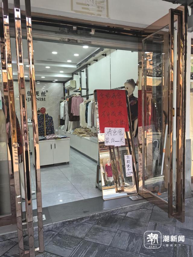 还一些还在经营的商户,挂出了“全场清仓”“大甩卖”“样衣清仓”等字样。
