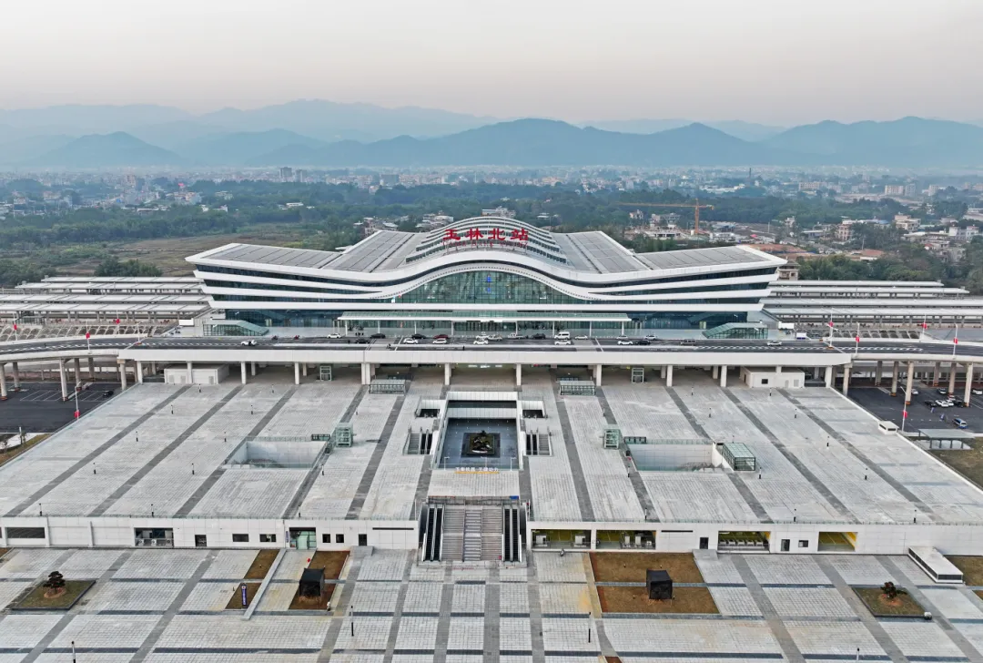 玉林北站位于玉林市区和北流市区之间,是南珠高铁南玉段全线最大的新建站房,可容纳5000人候车,站场规模为4台9线。车站正立面设计采用岭南建筑元素,结合玉林八景挂榜山典故,寓意“题名山头,人文荟萃”。