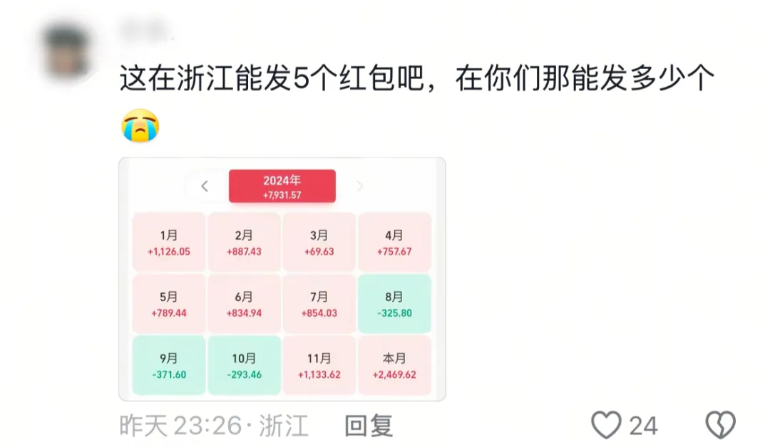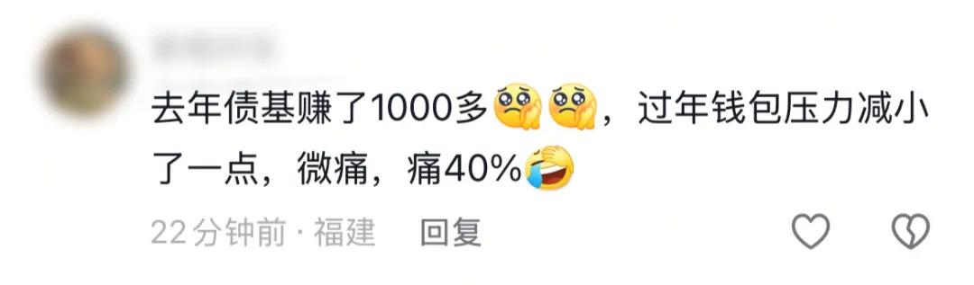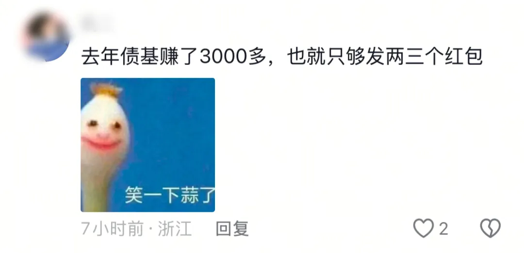 有浙江网友表示,“笑一下算了,去年债基一年赚的大概也就只够发两三个红包”。