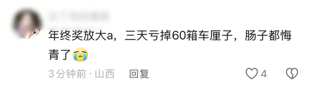 而一些把年终奖放在股市里的网友本想博一博单车变摩托,看能不能把压岁钱赚回来,结果“三天亏掉60箱车厘子”。