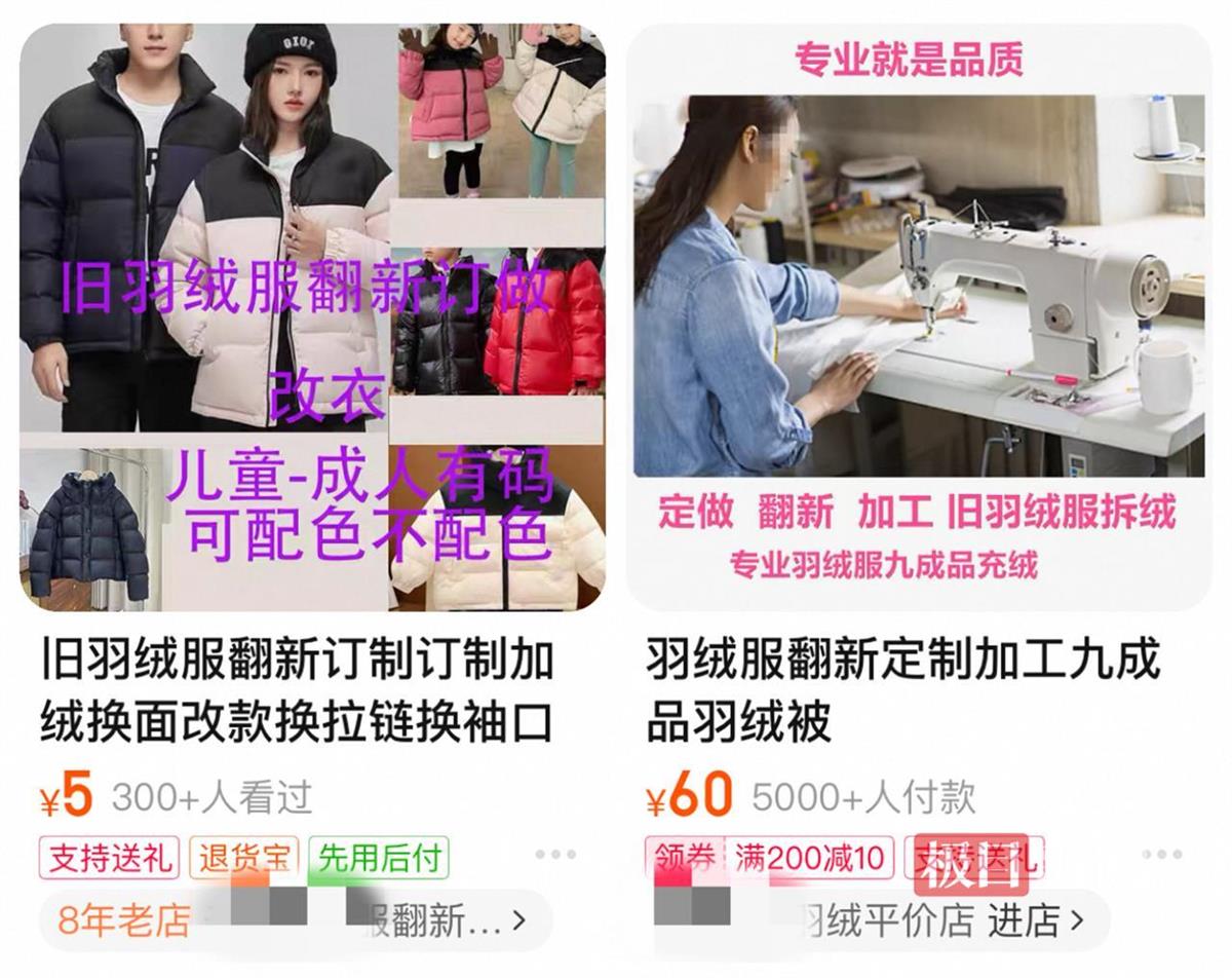 在线上平台,也有不少经营羽绒服翻新业务的店铺,其中不少都是今年新开的。