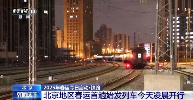 北京时间00时02分,由北京西开往合肥方向的K4159次列车正驶离站台,这是今年北京地区开出的第一趟春运列车。