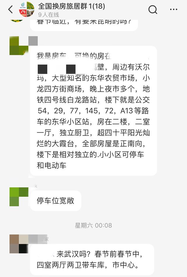 “我现在也有蹲换房群,寻找一些乐于分享的网友。”浪花姐说,她通常会选择和自己年龄差不多的网友,有一定生活阅历和经济基础,沟通起来更加顺畅。