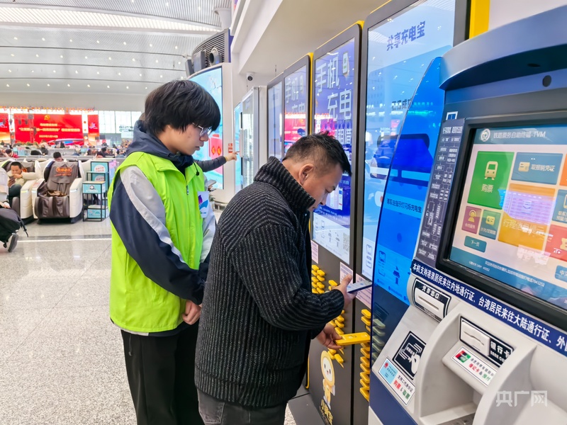 志愿者和警察在车站为旅客提供帮助(央广网记者丁安摄)
