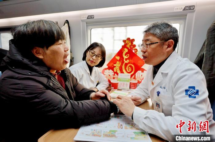 在杭州东开往北京南的G176次列车上,“西子号”乘务组联合杭州乘警支队、杭州市第三人民医院打造了“灵蛇贺岁非遗闹春”活动,旅客可体验年画拓印、糖画制作等,一副副寓意吉祥的春联也带着墨香与新春祝福传递到旅客手中。列车上,杭州市第三人民医院专家团队仔细为旅客义诊,耐心讲解健康知识,提供专业养生建议。