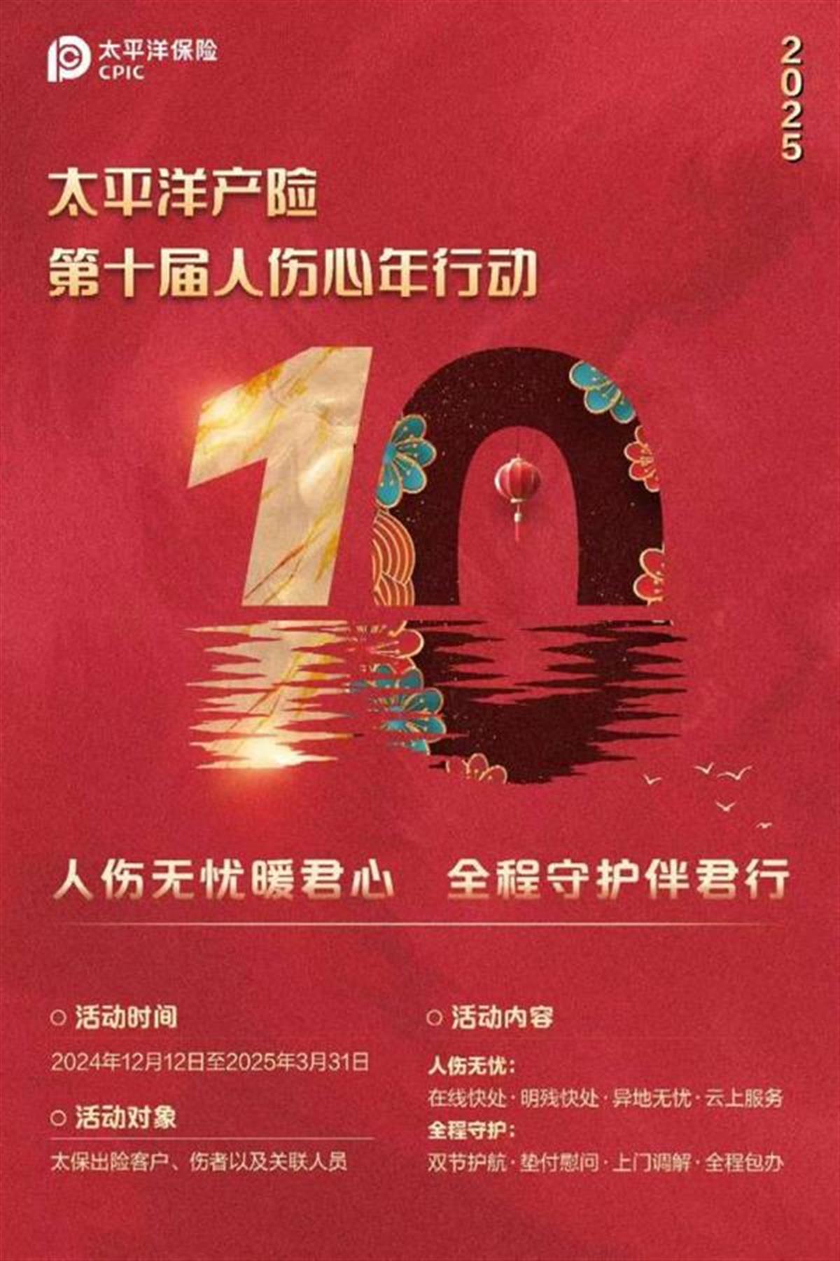 “心年行动”自2015年开展以来的十年间,太平洋产险湖北分公司一直践行“以客户为中心”的理念,以服务提升品牌价值,旨在让出险受伤的客户在节假日期间都能享受到快捷、温暖的服务体验。