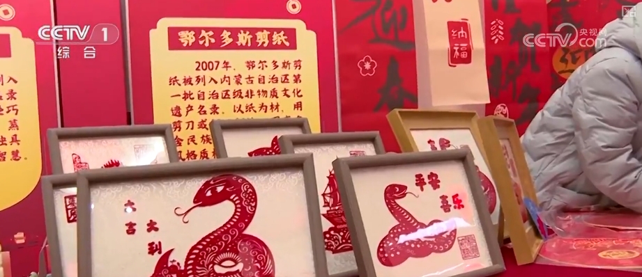 在内蒙古鄂尔多斯文化艺术中心活动现场,来自全国各地的40项非遗作品以及文创产品齐聚一堂,为市民提供了丰富多彩的年货选择。针刺毡艺、乌拉特刺绣等手工艺品,制作精美。非遗剪纸风格质朴粗犷,惟妙惟肖。