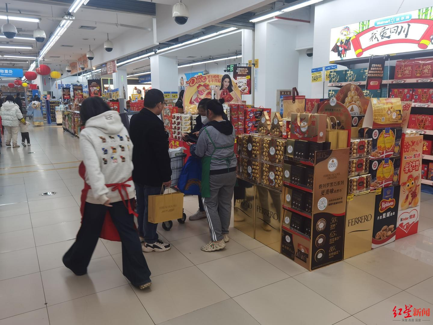 来自内蒙古的龚先生,在成都一家公司从事办公室行政工作已经两年,他正在超市里挑选寄回老家的川味年货。“我这次买了两袋腊肉、两袋腊肠、一盒张飞牛肉还有手撕兔、双流兔头这些,全是成都的特色产品,先寄回家里,等放假前,我再买一点四川的糕点带回去。”