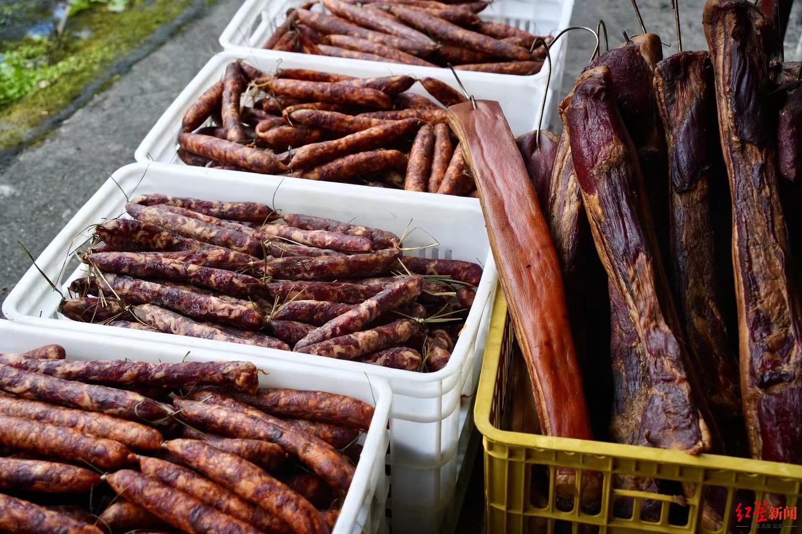 多年来一直做川味腊肉加工生意的杨艳,是一家成都本地的腊肉加工厂负责人,她告诉红星新闻记者,从去年11月底开始,已经有来自上海、杭州、广州、深圳的客户预订腊肉礼盒了。“我们今年的腊肉销售额有100多万元,平均每天都有300多个订单。其中有将近一半是销往全国各地的,尤其是上海和广州的客户,预订量是最大的。”