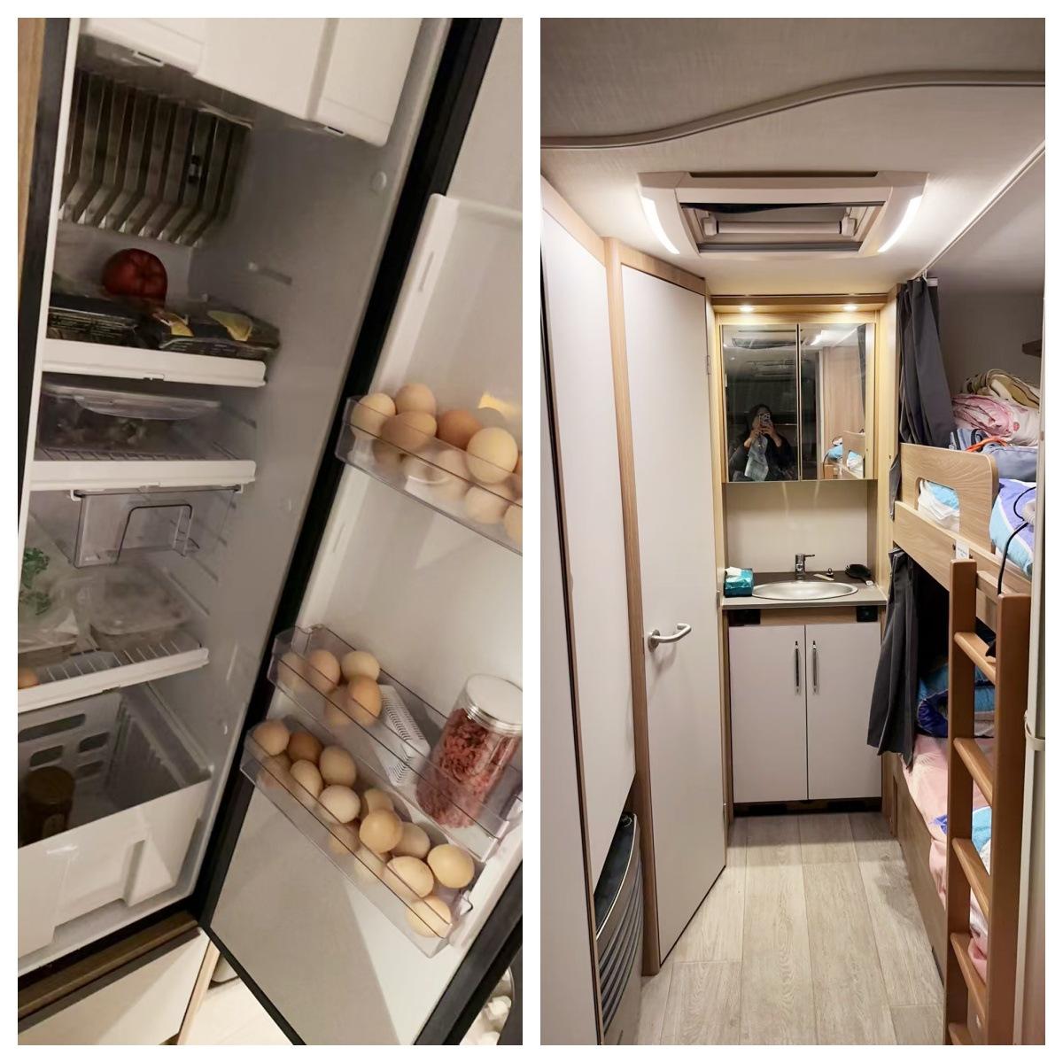 为了这趟旅程,周女士一家精心准备,将土鸡蛋、黄牛肉、青菜、萝卜等塞满房车冰箱,满满当当的食材承载着家的味道,也为旅途中的每一餐做好了充足准备。