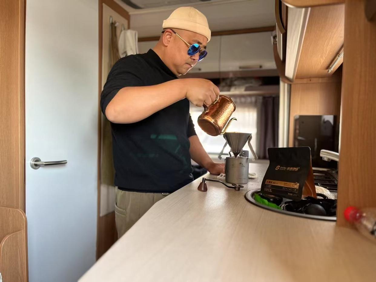 春节旅居云南,在房车手冲咖啡的赵先生 受访者供图