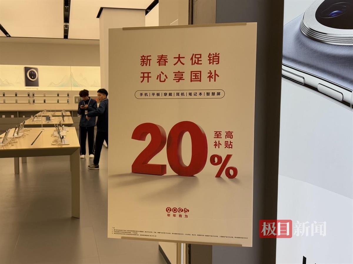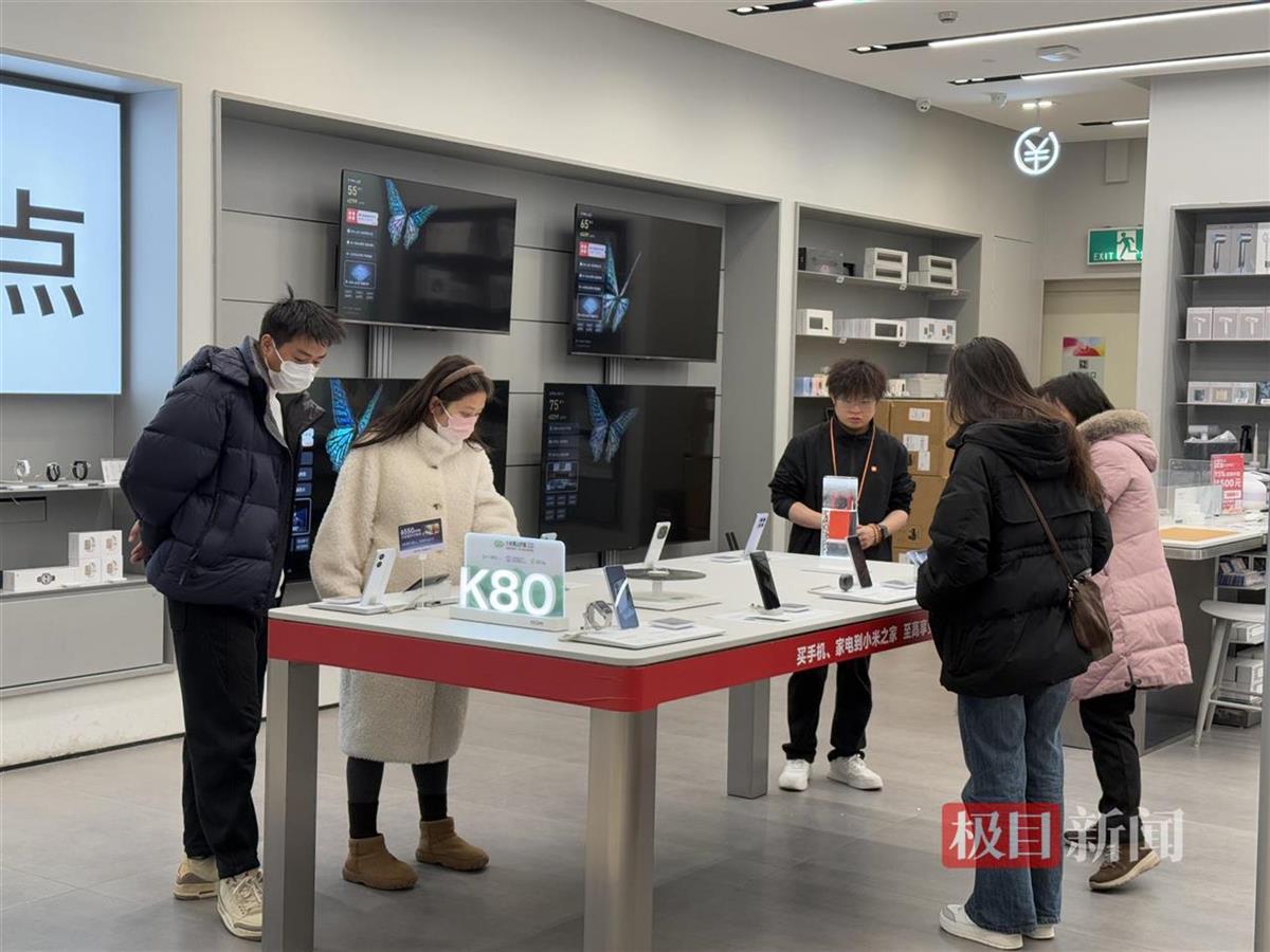 1月23日,极目新闻记者走访武汉数码产品卖场发现,临近春节,品牌纷纷推出新年限时优惠,最高500元的购新“国补”可叠加使用,有效拉动了消费者的换机热情。