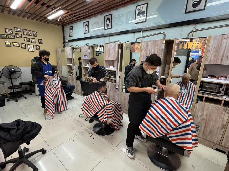 “我们平日高峰期一天也就200人,这几天翻倍,四个人一天剪了快500人。”于师傅说,虽然剪发时间短,但也不能马虎。“我们晚上营业时间截至8时30分,但这几天实际上都得9点下班。”于师傅说,一天下来腿都站酸了。