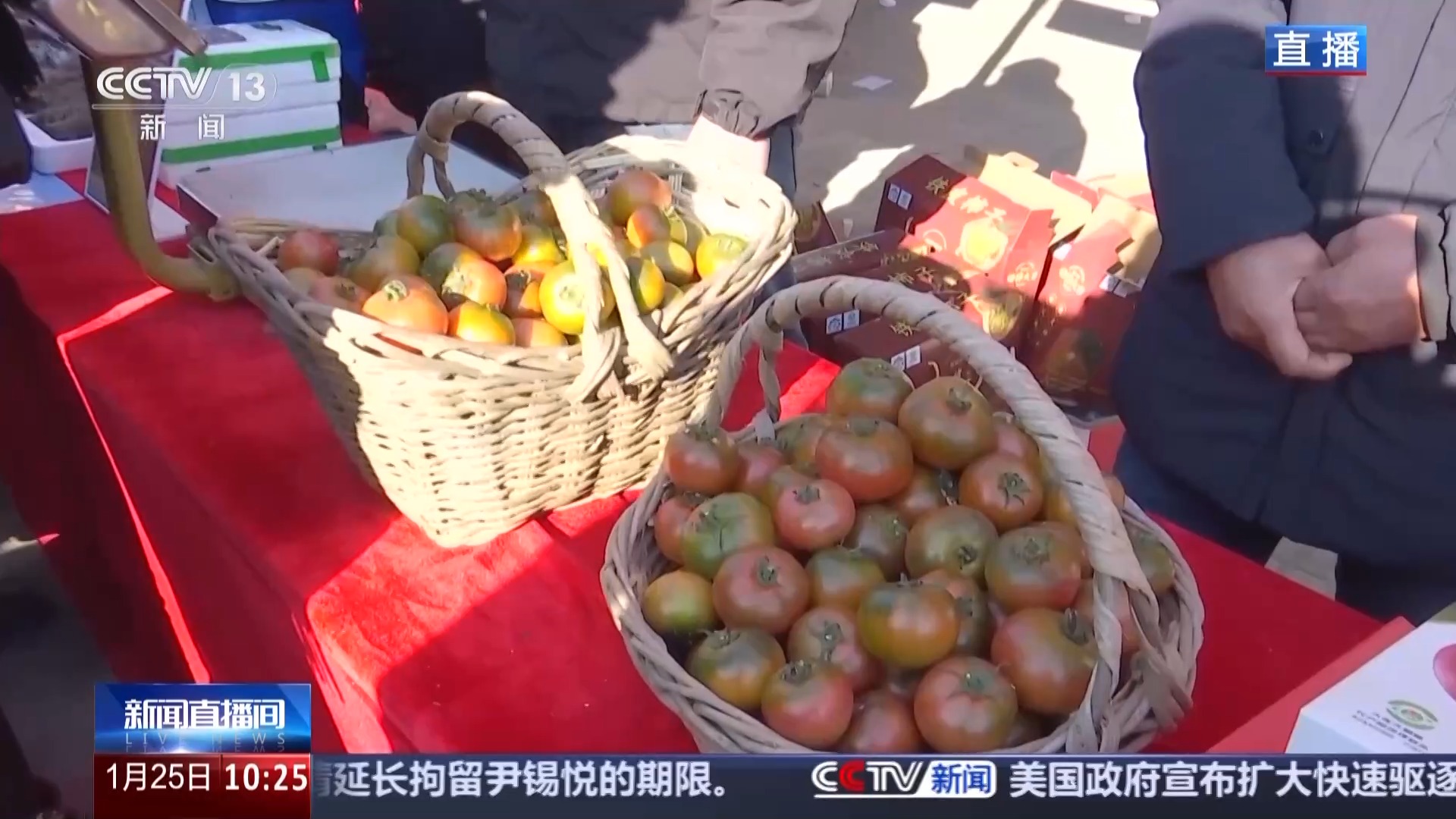 总台记者陶泽文:给大家简单介绍几种大集上的爆款。首先就是铁柿子,老牌明星了,很多来逛集的人都会买上一些。它是西红柿的一种,比咱们常吃的西红柿要硬,所以得名铁柿子,尝起来是酸甜脆爽。安波产的铁柿子不但在大集上热销,如今还从这里走向了全国,不论是北京的新发地,还是上海的江南市场,都有它的身影,小小的铁柿子为当地村民带来超1亿元年产值。