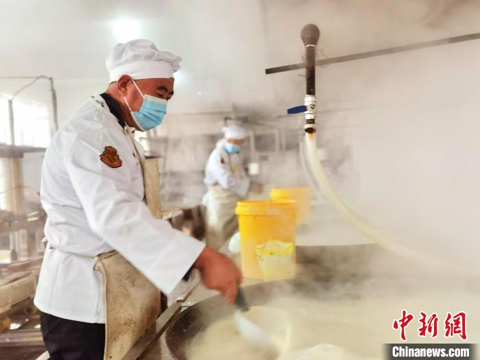 中新网长治1月26日电(李庭耀李玲)春节将近,年味愈浓,豆腐是餐桌上必不可少的美味。在山西长治上党区西坡村一家豆制品专业合作社,豆香浓郁,村民们操作着机械,将泡好的黄豆研磨成细腻的豆浆。大锅中豆浆翻滚,热气升腾。