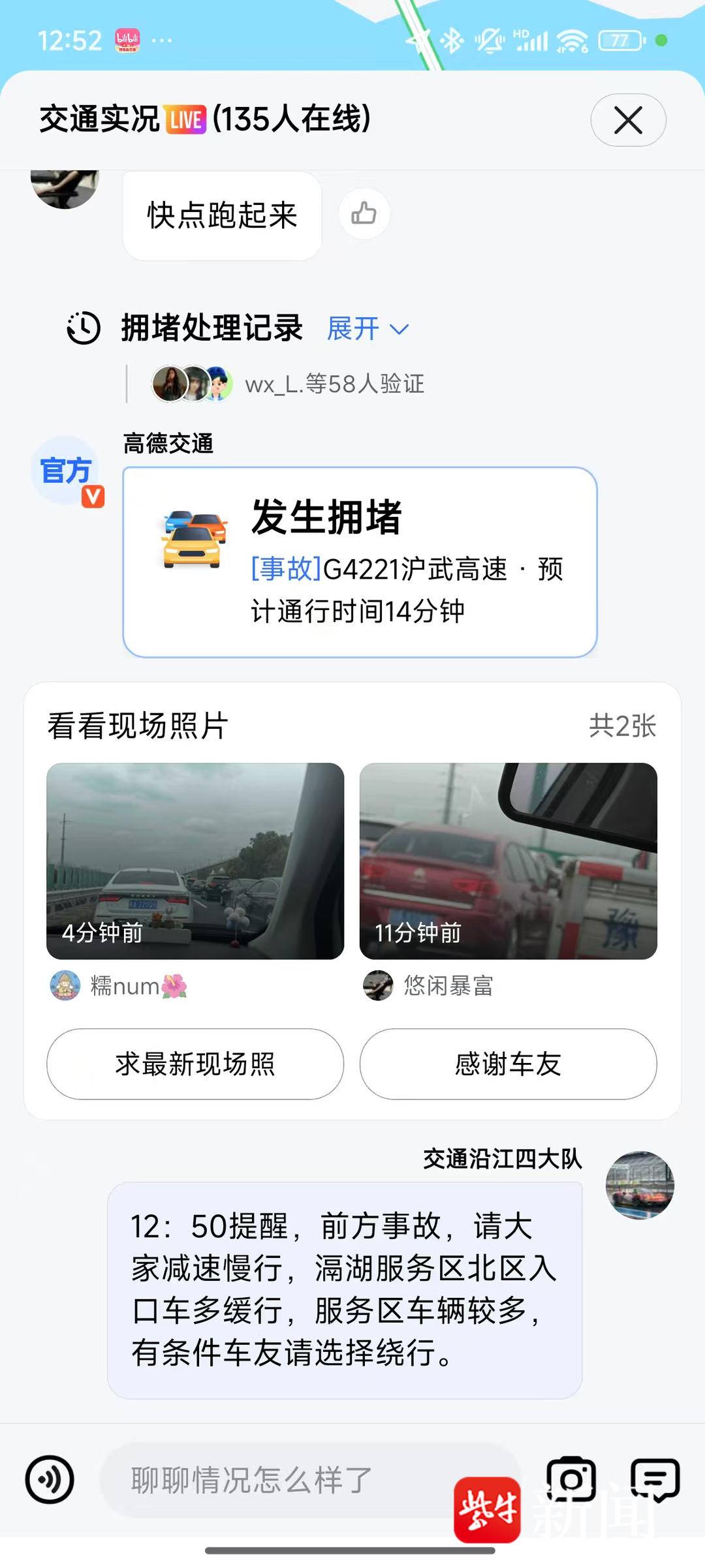 春运期间,沿江支队执法人员积极利用高德、百度等地图导航软件事件上报功能,及时上传交通事件定位和图片,向过往车友“零延时”推送路况信息。