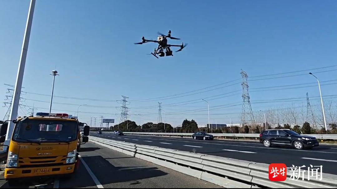 G4221沪武高速公路武进高新区枢纽,沿江支队第四大队利用无人机巡查重要节点路况,及时发现突发事件或险情,及时采取措施,迅速处置。
