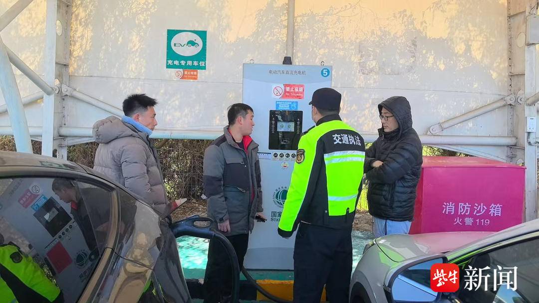 宁通支队第一大队现场对接G40沪陕高速公路仪征服务区,搭建管理网络,落实驻点保障要求,随新能源车主落实充电设备和服务保障措施。