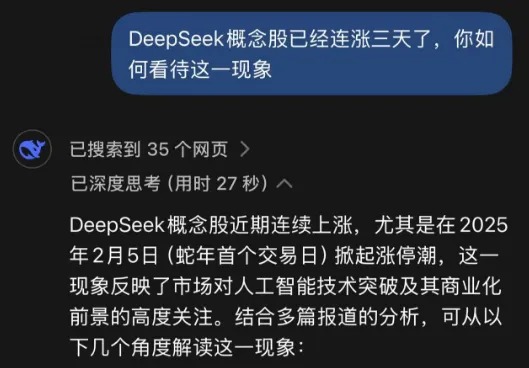 (1)DeepSeek概念股已经连涨三天了,你如何看待这一现象?