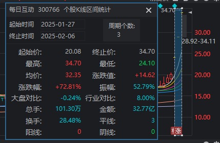 值得注意的是,“DeepSeek指数”已连续3个交易日领涨,累计涨幅高达34%。成分股中最强的每日互动,3个20cm一字板,带来了72.81%的涨幅。